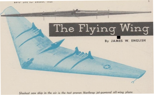 In 1949, Boy’s Life magazine ran an article chronicling Northrop’s ambitious Flying Wing project. Click here to read that article on line. And finally, here’s a very cool promotional video from 1949 touting the features and benefits of this futuristic Flying Wing: