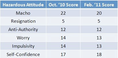 The first step to resolving one of these attitudes is recognition of it. It’s hard to self-diagnose something like this. But now there is an on-line tool that can help determine your hazardous attitude tendencies. David Hunter’s test is posted at the Aviation Human Factors website, which you can reach by clicking here (try Version 2).